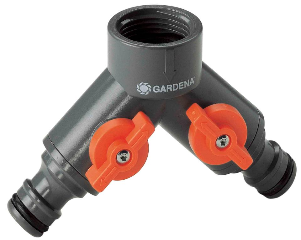 2-cestný ventil 3/4" + 1" od společnosti GARDENA umožňuje provoz dvou zařízení. Díky němu není nikdy třeba u kohoutu hadice přepojovat. Dva výstupy jsou plně regulovatelné, a to nezávisle na sobě. Dvoucestná ventil od společnosti GARDENA je vhodný pro kohouty se závitem 33,3 mm (G 1").