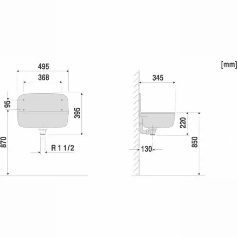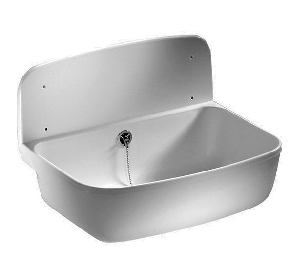 Nástěnná vylévka plastová, se zadní stěnou proti ostřiku. Odolná proti nárazu, teplotě,louhům a rozpouštědlům. Barva bílá.