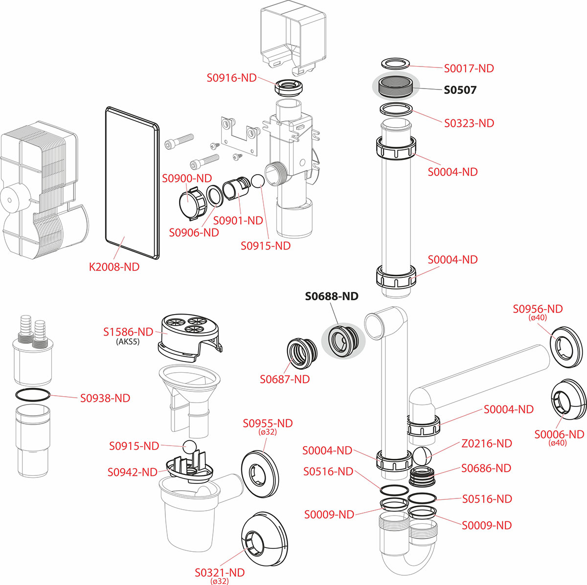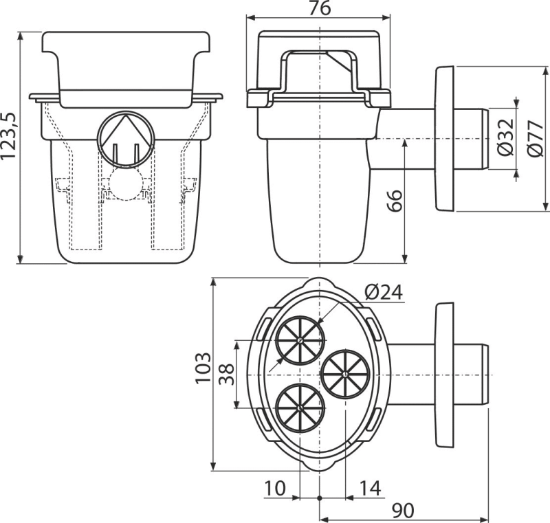 - Tělo sifonu s kombinovanou zápachovou uzávěrou