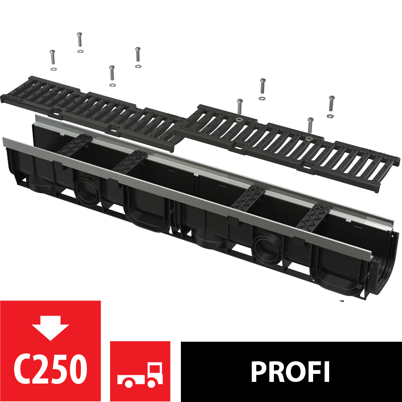 ALCA PLAST AVZ103-R202 Venkovní žlab 100mm s kovovým rámem a litinovým roštem C250