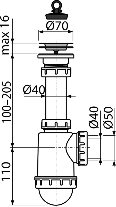 ALCADRAIN A441 DN50/40 Sifon dřezový s nerezovou mřížkou DN70