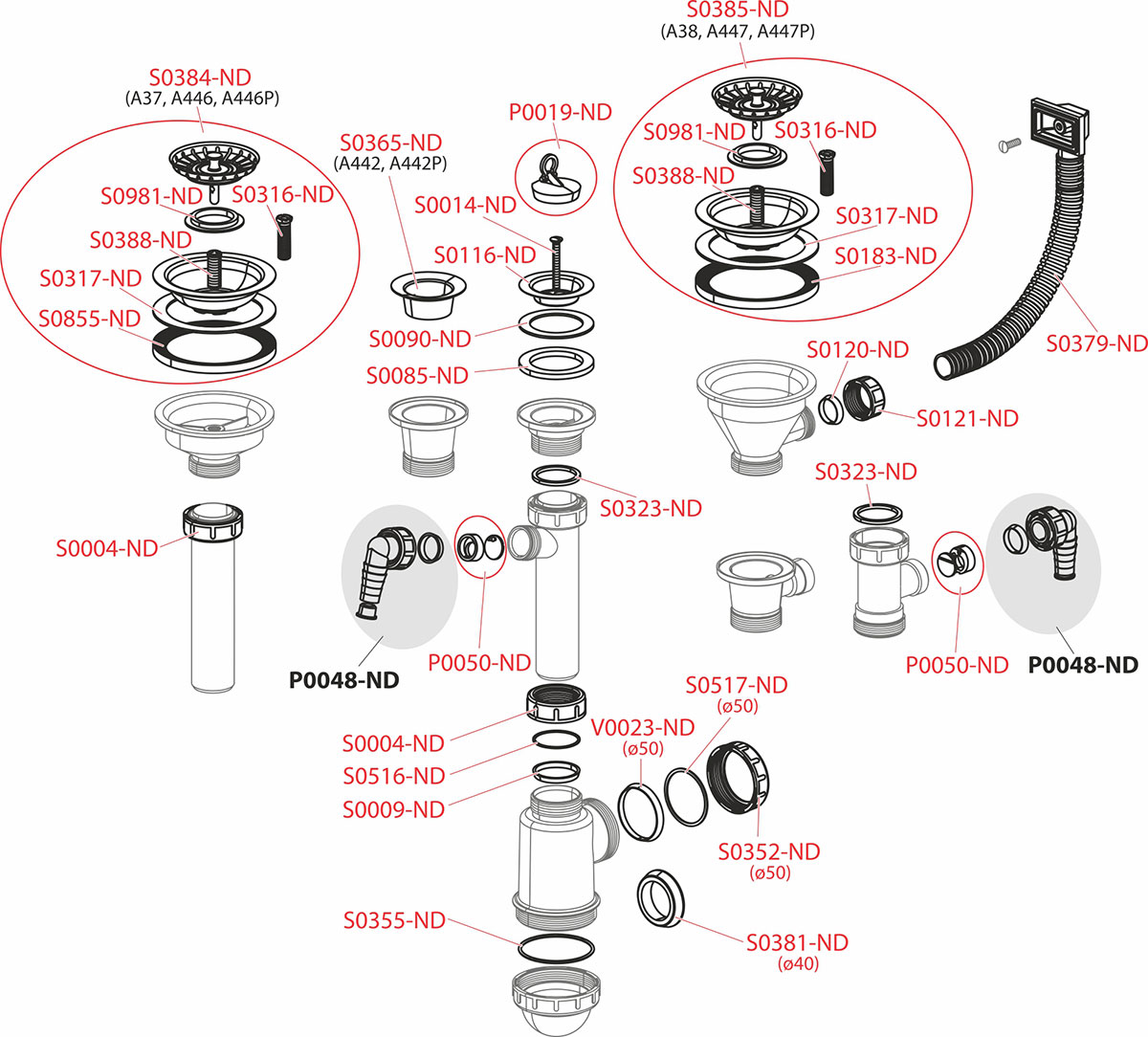 - Vývod odpadu připraven pro napojení odpadní trubky Ø50 nebo Ø40 mm