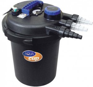 Uzavřený tlakový filtr určený pro okrasná zahradní jezírka do maximálního objemu 10 m3.