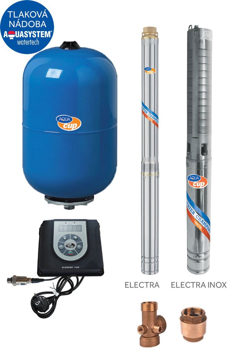 Domácí vodárny s ponorným čerpadlem ELECTRA nebo ELECTRA INOX. Frekvenční měnič chrání čerpadlo před přehřátím, chodem nasucho a zajišťuje konstantní tlak.