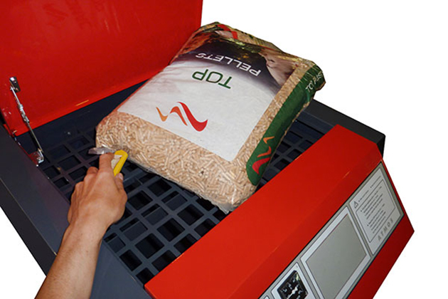 • Objeví-li se na displeji hořáku alarmové hlášení ALARM PELLETS – DOPLNIT PELETY, je nutné doplnit pelety do zásobníku paliva. Odklopte víko zásobníku ve vrchní části kotle a doplňte pelety. Po doplnění pelet není nutné načerpat pelety do dopravníku! Kotel je vybaven speciální funkcí proti jeho úplnému vyprázdnění.