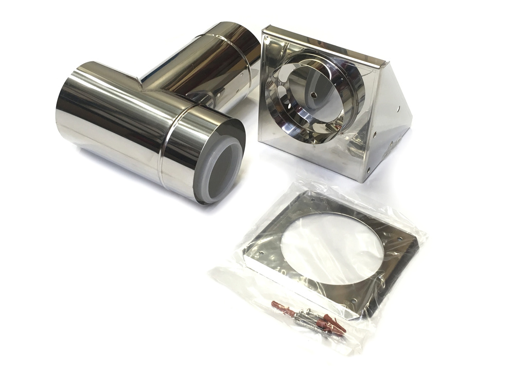 fasádní patní koleno s ukotvením a přívodem vzduchu DN185/125 nerez