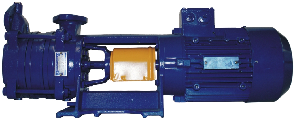 Spojovací těleso zajišťuje spojení čerpadla a elektromotoru přes pružnou spojku. Současně tvoří podstavec celého čerpacího soustrojí. Elektromotor tvoří pohon čerpadla. Jeho velikost je dána počtem stupňů.