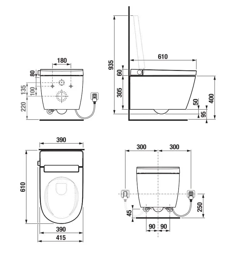 Závěsný klozet se zabudovanou bidetovací tryskou