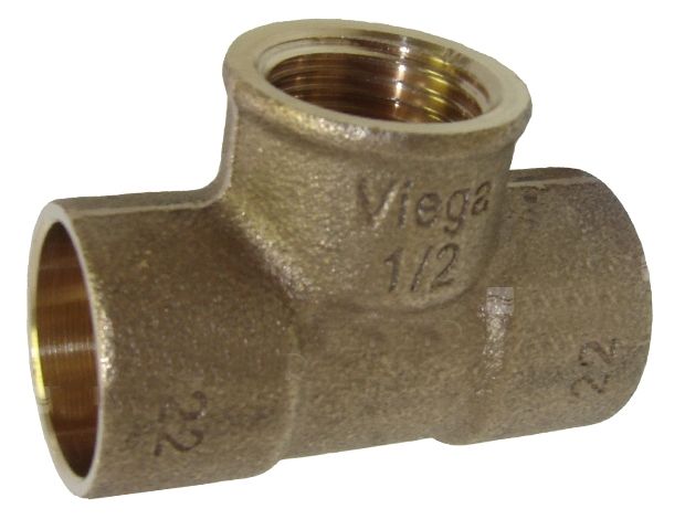 T-kus z červeného bronzu pro spojování měděných trubek pájením. Pro rozvody pitné a užitkové vody, systémy vytápění, solární zařízení, rozvody vzduchu