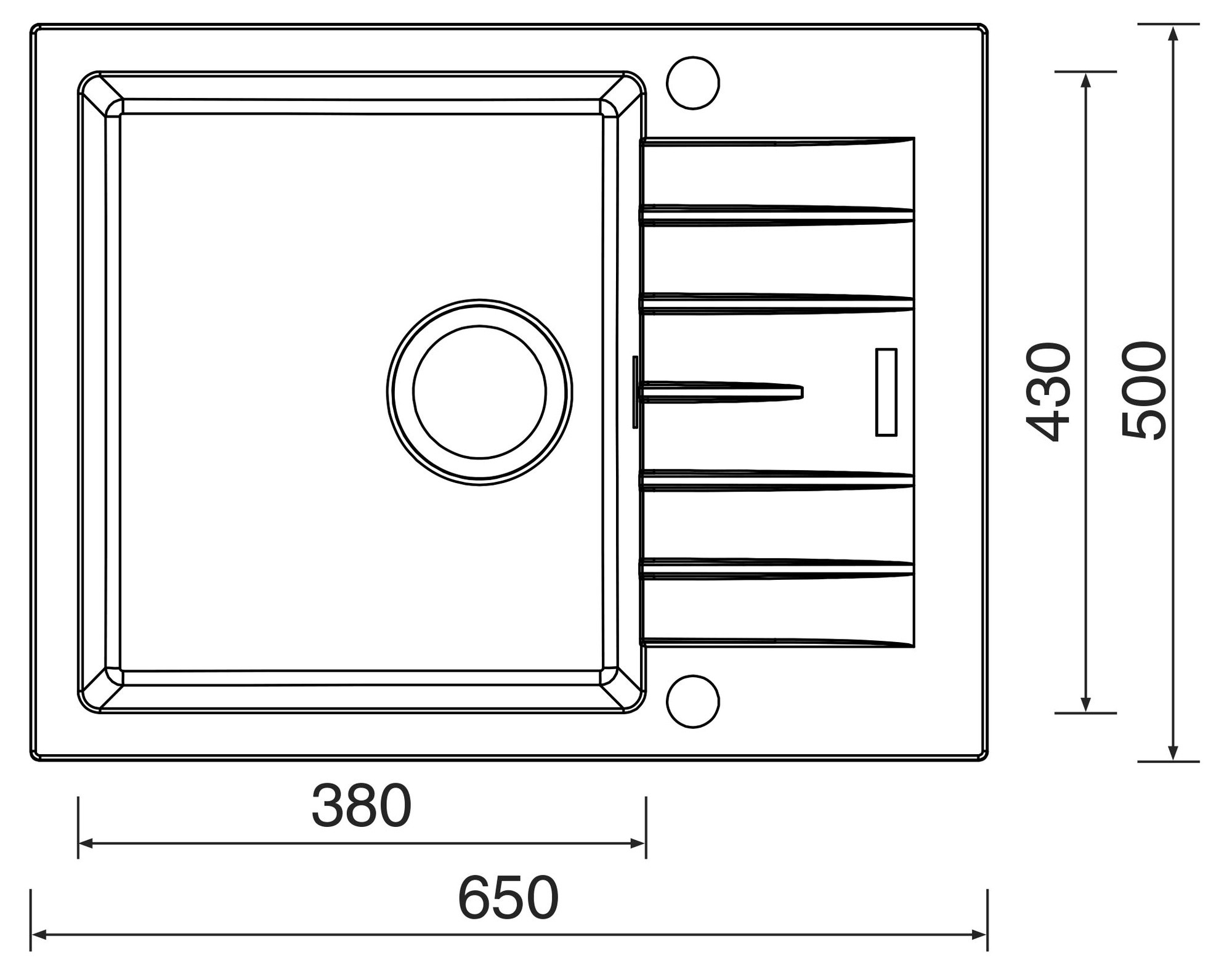 - Rozměr dřezu: 650 x 500 mm