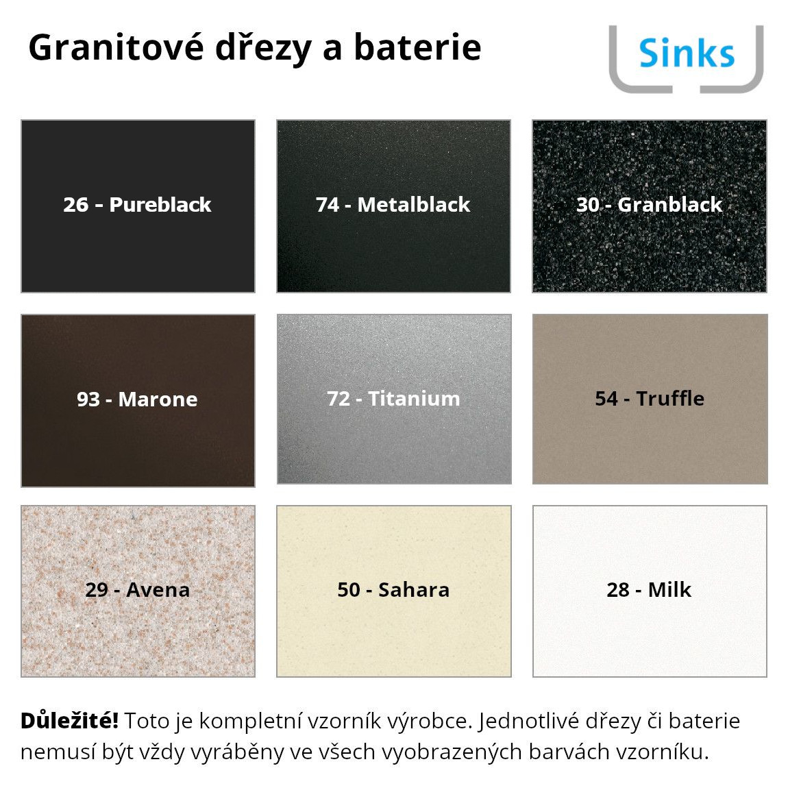 - Těsnění není součástí balení, u granitových dřezů se jako těsnění používá silikon