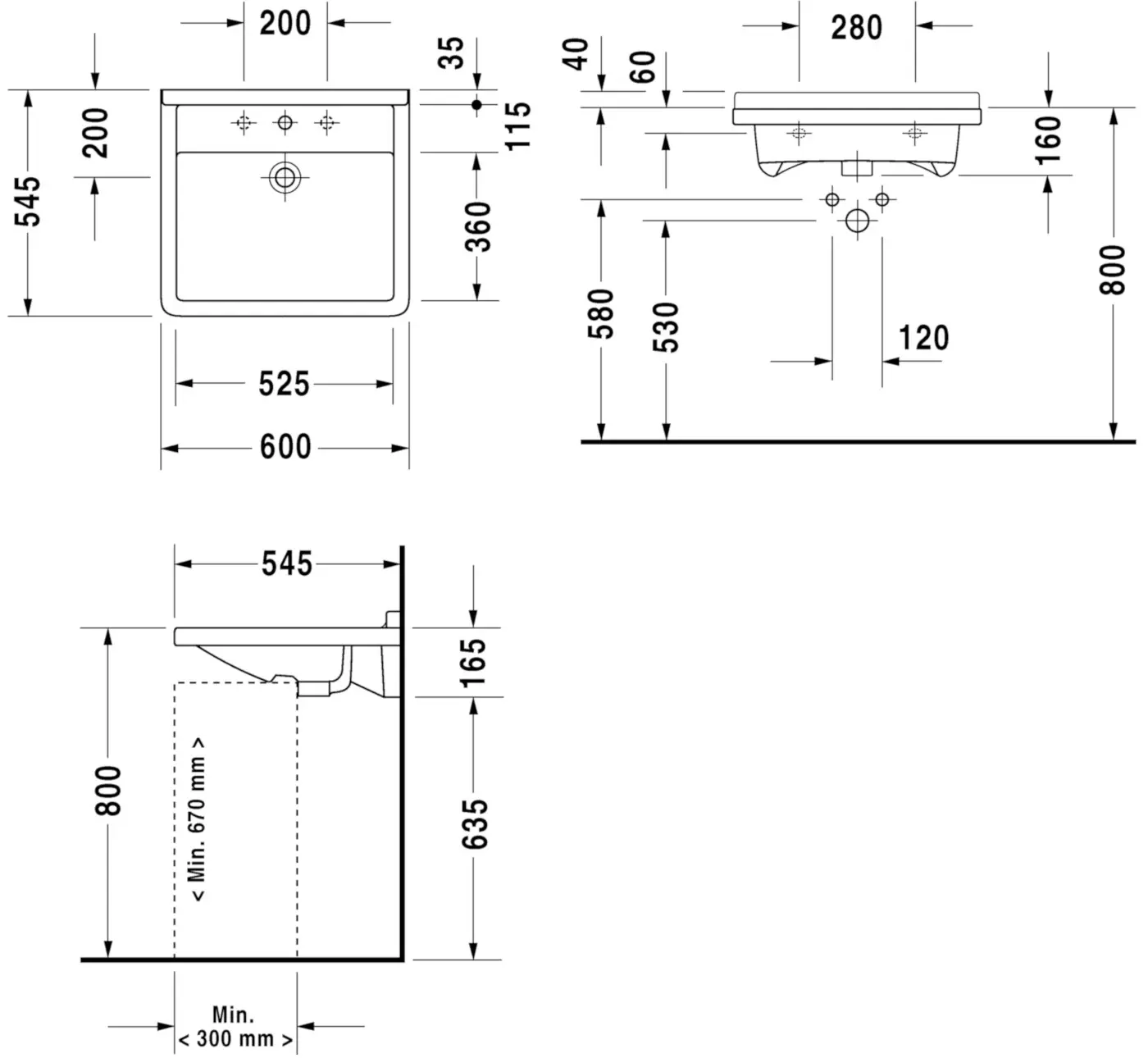 DURAVIT STARCK 3 Umyvadlo 600x545mm bilé 0309600000