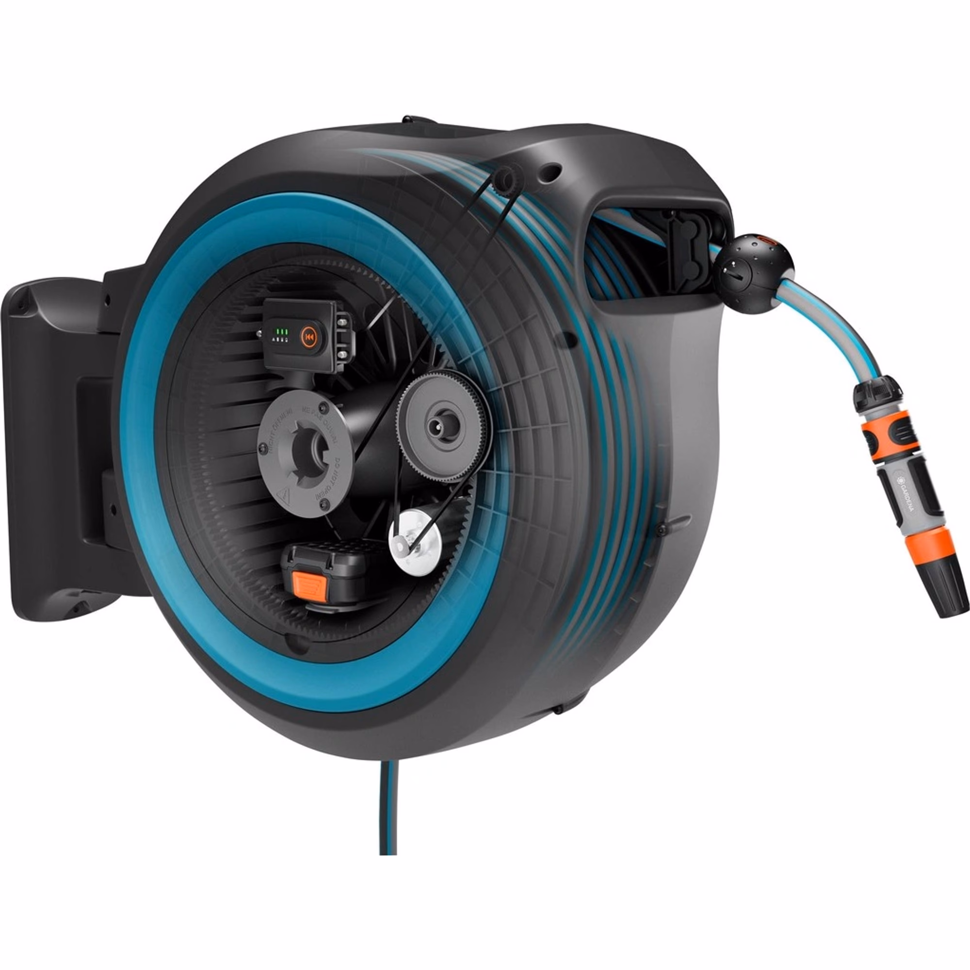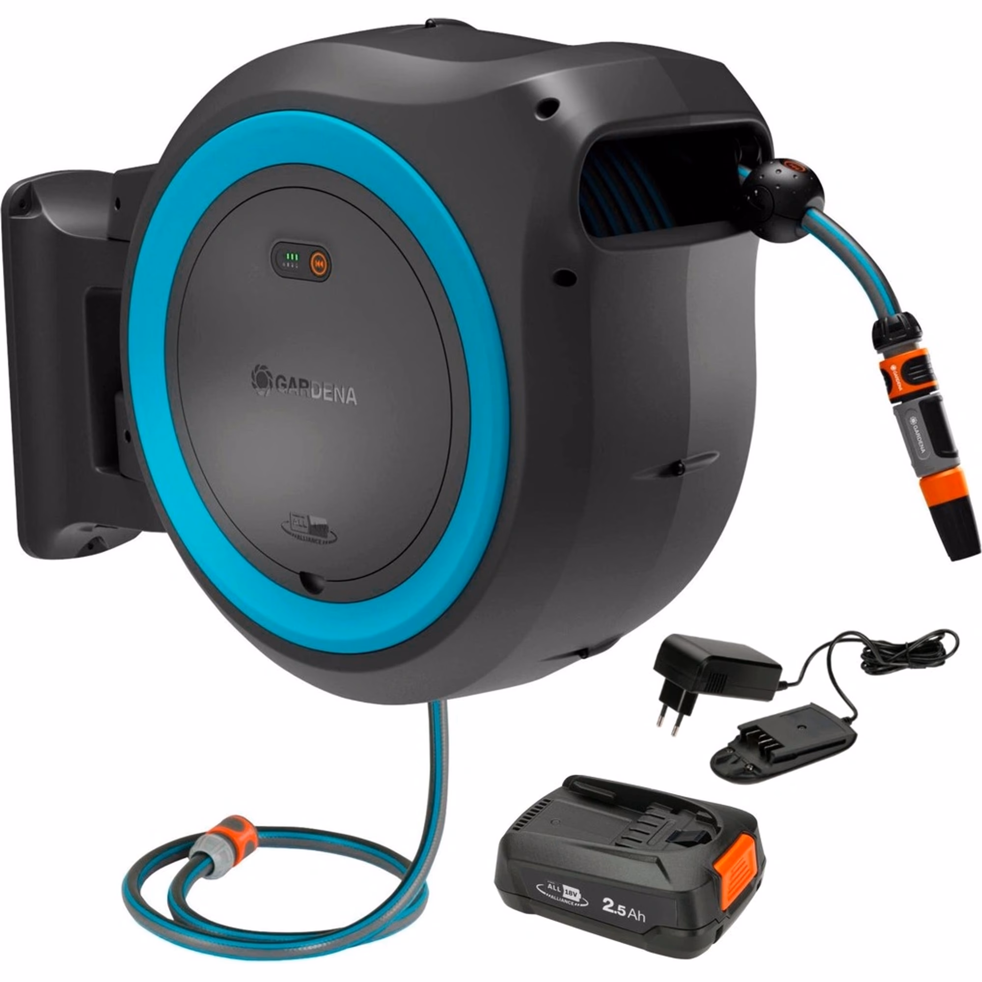 Zavlažování, které je vždy připraveno k akci: zahradní box na hadici GARDENA RollUp S není obyčejný box na skladování hadic. Budete nadšeni tím, jak je s tímto dobře konstruovaným boxem na hadici zavlažování vaší zahrady snadné. Zavlažování vaší malé zahrady je snadné s maximální svobodou pohybu. Box stojí na pevném kovovém hrotu, takže jej můžete nainstalovat kdekoliv na vaší zahradě bez poškození zdi. Zemnící hrot se šroubuje do země pomocí montážní tyče, a je proto extrémně stabilní. Pro použití jednoduše vytáhněte zahradní hadici na maximálně 15 metrů a můžete okamžitě začít zavlažovat. Integrované uzamykací body v krátkých vzdálenostech zajišťují snadnou manipulaci a automaticky fixují hadici v požadované vytažené délce. Díky modernímu designu lze hadicový box otočit o 360°, čímž se dostanete do všech koutů vaší zahrady. Při zavlažování sleduje box na hadici vaše pohyby, a tím zabraňuje zauzlení nebo zamotání hadice. Kromě toho vám tento zahradní box ušetří namáhavé tahání hadice po zahradě, ohýbání se a mokré a špinavé ruce při navíjení: krátké zatažení za rozvinutou hadici aktivuje integrovanou pružinu, která hadici zcela automaticky a spolehlivě navine zpět do boxu. Aby nedocházelo k zablokování nebo kroucení hadice, udržuje integrovaná vodící cívka zahradní hadici v dráze a technologie RollControl zajišťuje bezpečné a kontrolované navíjení. Box je nastaven na výšku robotických sekaček GARDENA tak, aby byl trávník kolem boxu na hadici vždy udržován a sekán. Vysoce kvalitní materiál je odolný vůči UV-záření a mrazu, box může zůstat v zahradě po celý rok a zaručuje vám dlouhou životnost a používání bez údržby. Box je obzvláště kompaktní a stylově navržený tak, aby jej bylo možné snadno integrovat do jakékoliv zahrady. Zahradní box na hadici je dodáván s pružnou připojovací hadicí, všemi potřebnými montážními díly, prvky Original GARDENA System a postřikovačem se dvěma různými vzory postřiku.