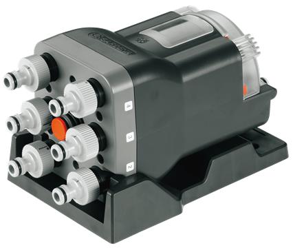 V kombinaci s počítačem vody GARDENA C 1060 (č.v. 1864, 1866), GARDENA rozdělovač vody automatic zajišťuje automatické zavlažování až šesti různých oblastí zahrady, jednu po druhé. Například můžete zavlažovat trávník zavlažovačem, pak hrnkové rostliny, záhonky, živé ploty a truhlíky pomocí systému kapkové závlahy. Průtok vody automaticky otevře výstupy, jeden po druhém, v závislosti na naprogramování zavlažovacího počítače. Praktické: rozdělovač vody lze pružně přizpůsobit podmínkám ve vaší zahradě. To znamená, že můžete zavlažovat buď pouze dvě oblasti nebo až šest. Nepotřebné výstupy vody se jednoduše deaktivují pomocí páčky. Stejně jako různé rostliny v zahradě potřebují různé množství vody, lze také individuálně nastavit dobu zavlažování v závislosti na naprogramování zavlažovacího počítače. Rozdělovač vody dopraví požadované množství na správné místo. Toto inteligentní řešení je ideální, když není k dispozici dostatečné množství vody pro současné napájení všech koncových přístrojů. Jednoduše připojíte rozdělovač vody na zeď domu, nebo na zem. Protože jsou všechny vývody vody umístěny v jednom směru, zařízení zabírá velmi málo místa. Je vybaven vnějším závitem 26,5 mm (G 3) a je dodáván s pěti ks šroubení ( č.v. 901) a třemi koncovými zátkami.