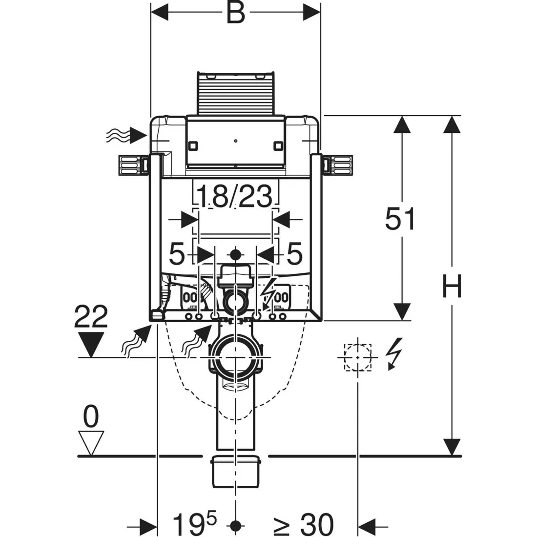 •modul vybaven trubkovou chráničkou pro přívodní potrubí k připojení sprchovacích WC Geberit AquaClean
