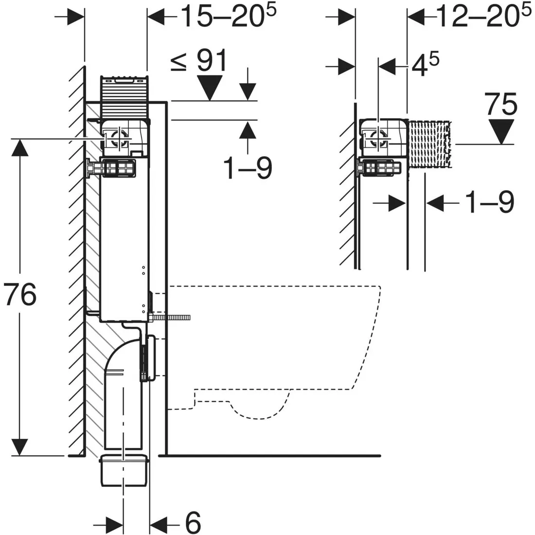 •pro závěsné WC s připojovacími rozměry podle EN 33:2011