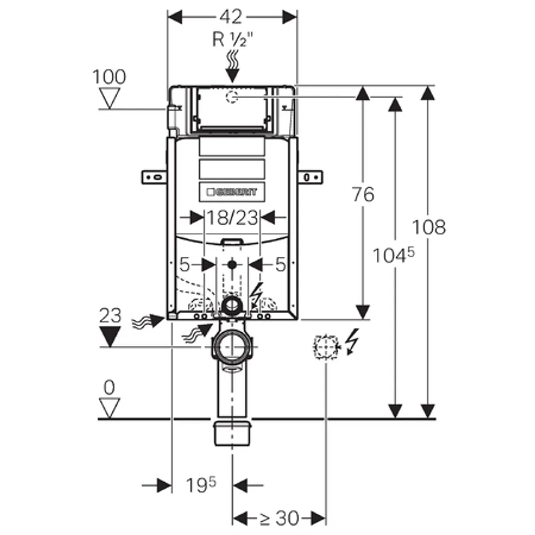 •modul vybaven trubkovou chráničkou pro přívodní potrubí k připojení sprchovacích WC Geberit AquaClean