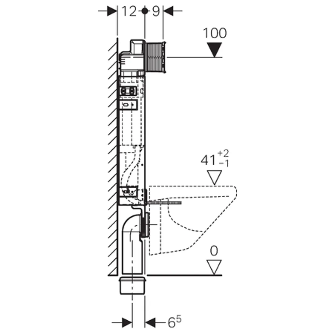 Geberit Kombifix montážní prvek pro závěsné WC, 108 cm, se splachovací nádržkou pod omítku Sigma 12 cm.