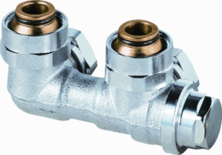 HEIMEIER VEKOLUX šroubení rohové pro VK 0531-50.000 Připojovací šroubení s vypouštěním pro otopná tělesa s integrovanou ventilovou vložkou Připojovací šroubení Vekolux s vypouštěním je určeno pro připojení deskových otopných těles s integrovanou ventilovou vložkou se spodním připojením s R1/2 vnitřním nebo G3/4 vnějším závitem. Přímé i rohové provedení je k dispozici pro dvoutrubkové i jednotrubkové soustavy. Popis Připojovací šroubení Vekolux firmy HEIMEIER slouží k připojení otopného tělesa se spodním připojením k otopné soustavě, k jeho uzavírání, vypouštění a napouštění. Šroubení je vybaveno vřetenem pro současné uzavření přívodního i zpětného potrubí a do vřetene integrovaným vypouštěním ventilem. Všechny funkce lze ovládat univerzálním klíčem HEIMEIER. Šroubení se vyrábí v rohovém a přímém provedení pro jednotrubkové i dvoutrubkové otopné soustavy s připojením k otopnému tělesu vnitřním závitem R1/2 nebo vnějším závitem G3/4. Rozteč připojení je 50 mm.Speciální převlečné matice a pružné plošné těsnění umožňují vyrovnat nepřesnosti až 1,0 mm a docílit tak montáže bez pnutí. Vřeteno a kuželka jsou utěsněny pomocí O-kroužků z EPDM – pryže. Těleso šroubení je z poniklovaného korozivzdorného bronzu, provedení pro jednotrubkové soustavy má speciální geometrii s definovaným poměrem zatékání. Připojovací závit ventilu G3/4 odpovídá svěrným připojením pro měděné, plastové, přesné ocelové nebo vícevrstvé trubky. Použít je nutno výhradně příslušně označená svěrná šroubení HEIMEIER (označená např. 15 THE). V kombinaci s krytkou šroubení vytváří pohledově velmi zdařilé připojení otopného tělesa. Max. provozní teplota 120°C, s krytkou 90°C. Max. provozní tlak 10 bar.