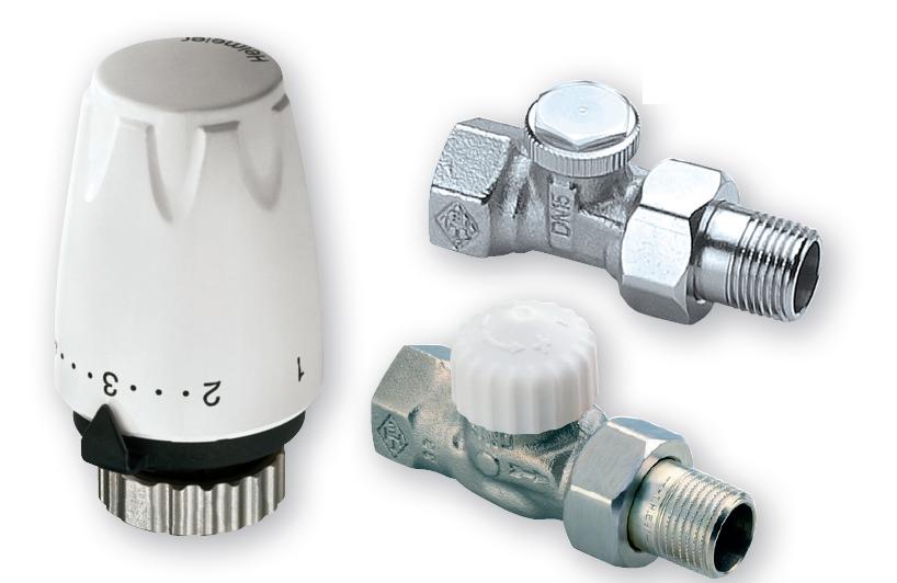 Hlavice DX Bílá + přímý ventil V-exakt 1/2" + přímé šroubeni Regulux 1/2" - pro připojení těles Klasik a koupelnových žebříků.