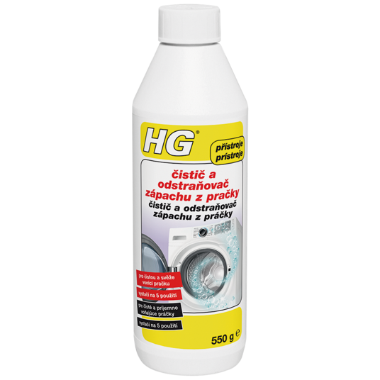 Pračka může po nějaké době začít nepříjemně vonět nebo dokonce zapáchat. Příčinou zápachu jsou usazeniny, špína a zbytky (tekutých) pracích prostředků v odtokovém potrubí, filtrech a gumových částech pračky. HG "čisticí prostředek pro odstranění zápachu z pračky" čistí velmi efektivně celou pračku, takže pračka bude znovu čistá a svěže vonět.