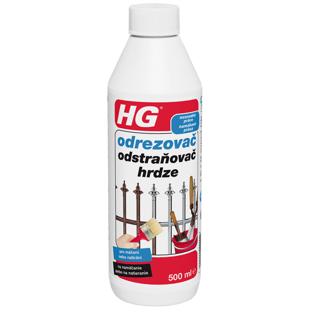 Odstranění rzi ze zahradního nářadí, bruslí, šroubů, matek a nářadí lze rychle a jednoduše pomocí přípravku HG odrezovač a to navíc bez náročného broušení! HG odrezovač se velmi pomalu vypařuje, čímž přípravek působí na povrch delší dobu. Díky silnému antikoroznímu působení přípravku je možné kov ihned po ostření lakovat.