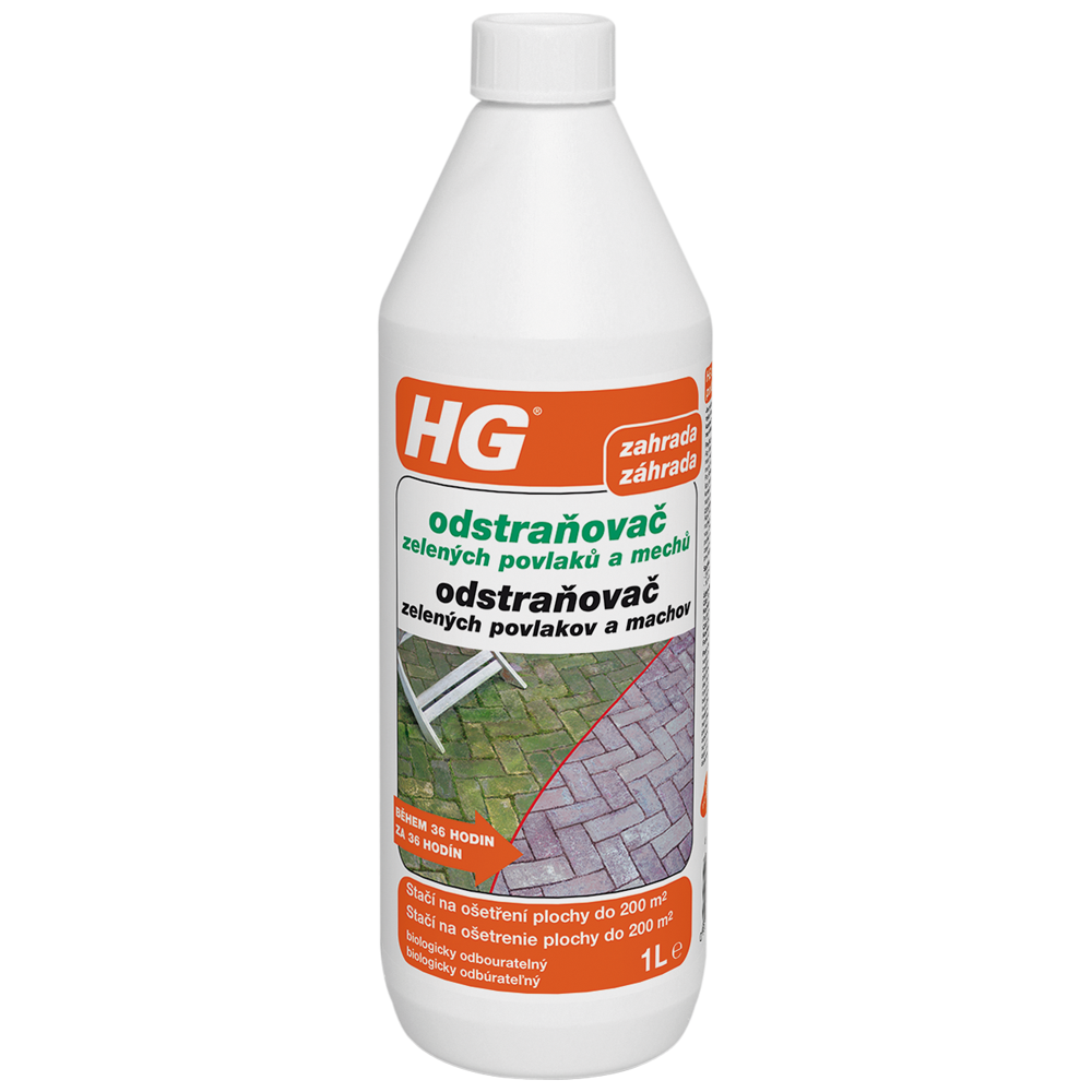 Přípravek HG odstraňovač zelených povlaků a mechů odstraňuje nepříjemné šedozelené povlaky a mechy z teras, cest, kamenů, zdí, střech, květináčů a pod. Po použití přípravku povlak během 36 ti hodin zmizí. Na očištěném povrchu zůstanou stopy přípravku preventivně působících příštích pár měsíců. Přípravek “HG odstraňovač zelených povlaků a mechů“ není škodlivý pro trávu ani jiné rostliny.