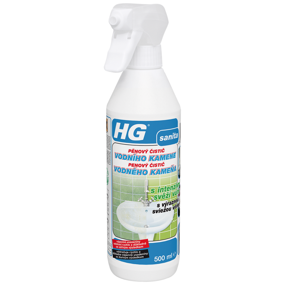 Kam se dostane voda, je i vodní kámen. Vodní kámen vytváří matný povlak na kachličkách, ve sprchových koutech, plastových vanách, umyvadlech, vodovodních bateriích a toaletách. HG pěnový čistič vodního kamene odstraňuje tento matný povlak účinně a rychle a zanechává za sebou pouze zářivý lesk! HG pěnový čistič vodního kamene je dostupný ve dvou různých provedeních. HG pěnový čistič vodního kamene originál a HG pěnový čistič vodního kamene s intenzivní svěží vůní poskytují plnou pěnu, která zaručuje delší dobu působení, která je nezbytná zejména pro svislé plochy, jako jsou stěny a sprchové kouty. HG pěnový čistič vodního kamene nenarušuje chromované povrchy, glazury a spáry.