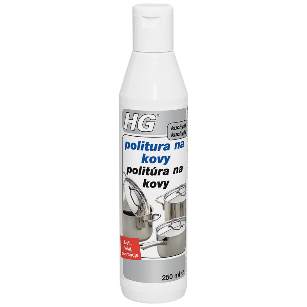 Přípravek HG politura na kovy je pečující přípravek pro nerezové kuchyňské plochy, hrnce, kuchyňské potřeby. Ale také pro hliníkové nádoby, pracovní plochy z tvrdého plastu, chromové kohoutky, konvice, elektrické vařící desky. HG politura na kovy čistí, leští a ochraňuje v jednom.