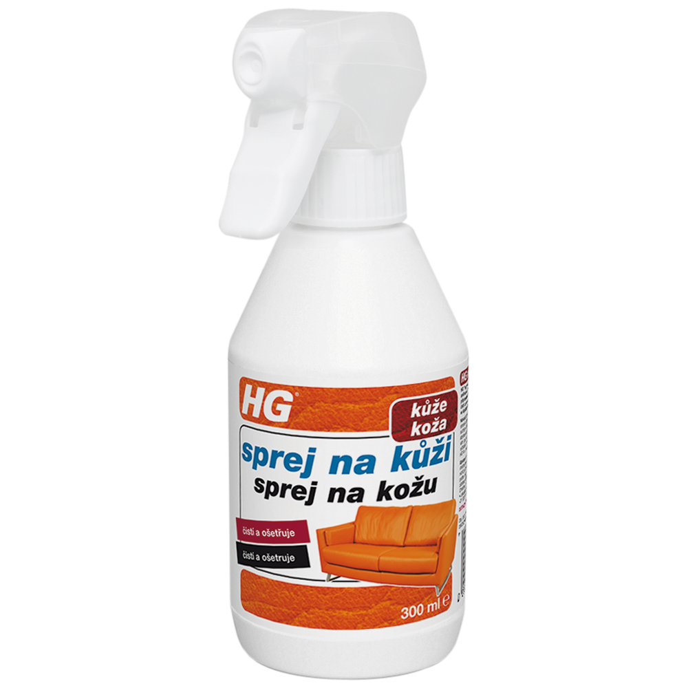 HG sprej na kůži je snadno aplikovatelný a šetřící přípravek pro anilinové a barevné druhy kůží a kůže ošetřené přípravkem HG 4 v 1 pro kůži. Tento přípravek čistí a vyživuje při jednom, takže kůže při jeho pravidelném používání zůstává ve špičkové kondici.