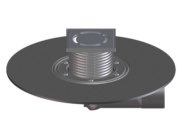 Balkónový a terasový vtok DN50/75 s otočným kloubem na odtoku, odtok s plynule nastavitelným sklonem od 0 - 90° (kulový kloub), s izolačním límcem, se suchou a nezámrznou klapkou proti pronikání zápachu, s plastovým výškově stavitelným nástavcem 12 - 70mm, s rámečkem 123 x 123mm a mřížkou z nerezové oceli 115x115mm. Stavební kryt v balení.