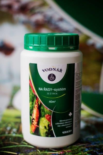Použití: Přípravek rozmíchejte v nádobě s vodou z jezírka a rovnoměrně rozlijte po celé ploše, hlavně na místa nejvíce zasažená řasou (nepoužívat kovové materiály), aplikovat i usazené zybtky přípravku z nádoby. 250g stačí k ošetření 10 kubíků vody.
