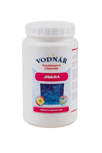 Jiskraje dvojfunkční přípravek ve formě 50 g tablet k projasnění vody. Mírně vyvločkovává nečistoty a stabilizuje pH bazénové vody.Jiskra hydrolyzuje při reakci s vodou za vzniku kladně nabitých polymerů. Tyto polymery reagují s opačně nabitými složkami nečistot obsaženými ve vodě. Takto se nabalují jemné částečky nečistot a vznikají větší vločky, které je možno snáze odfiltrovat. Voda, po odstranění těchto nečistot znovu získává jiskru a původní jas. Dále se uvolňuje látka, která napomáhá udržovat hodnotu pH v optimální oblasti.
