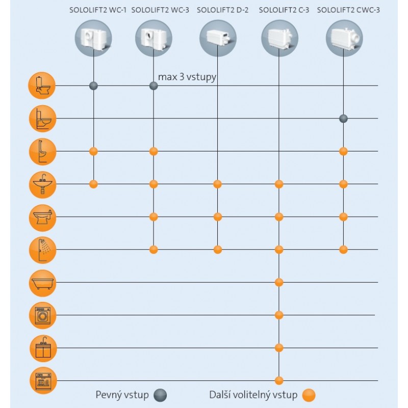 Sololift2 C-3 je malá, kompaktní automatická čerpací stanice vhodná pro čerpání šedé odpadní vody (bez fekálií) z rodinných domů, kde nelze tuto odpadní vodu odvádět do kanalizace s využitím samospádu.