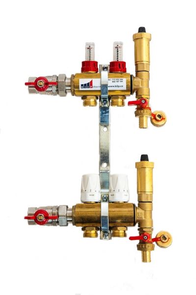 PROFI 4 rozdělovač je mosazný rozdělovač české výroby určený jak pro podlahové vytápění tak pro připojení otopných těles (radiátorů). Velkou výhodou PROFI rozdělovačů, je jednoduchá montáž a velmi jednoduché vyregulování jednotlivých otopných okruhů topného systému díky průtokoměrům. Rozdělovače jsou osazeny 1" kulovými kohouty se šroubením a vnitřním závitem pro připojení. Ruční hlavice lze nahradit termoelektrickými pohony KiipTherm. Pro ovládání elektrických pohonů doporučujeme prostorový termostat Elektrobock PT713-EI osazený kapilárou do podlahy pro hlídaní teploty podlahy. Jinak lze použít jakýkoliv spínací termostat na 230V nebo 24V dle použitého elektropohonu Honeywell Smart-T.
