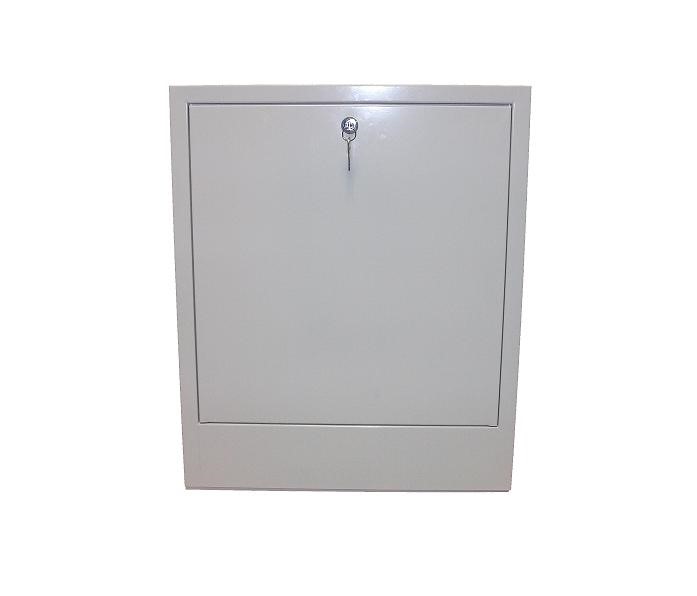 Ocelová skříň se zámkem, lakovaná pod omítku bílá barva.