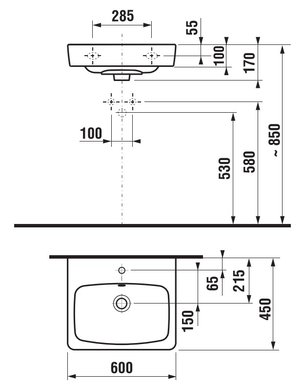 LYRA plus 1038.2.000.104 umyvadlo 60cm do nabytku ,s 1 otv. pro bat.uprostred