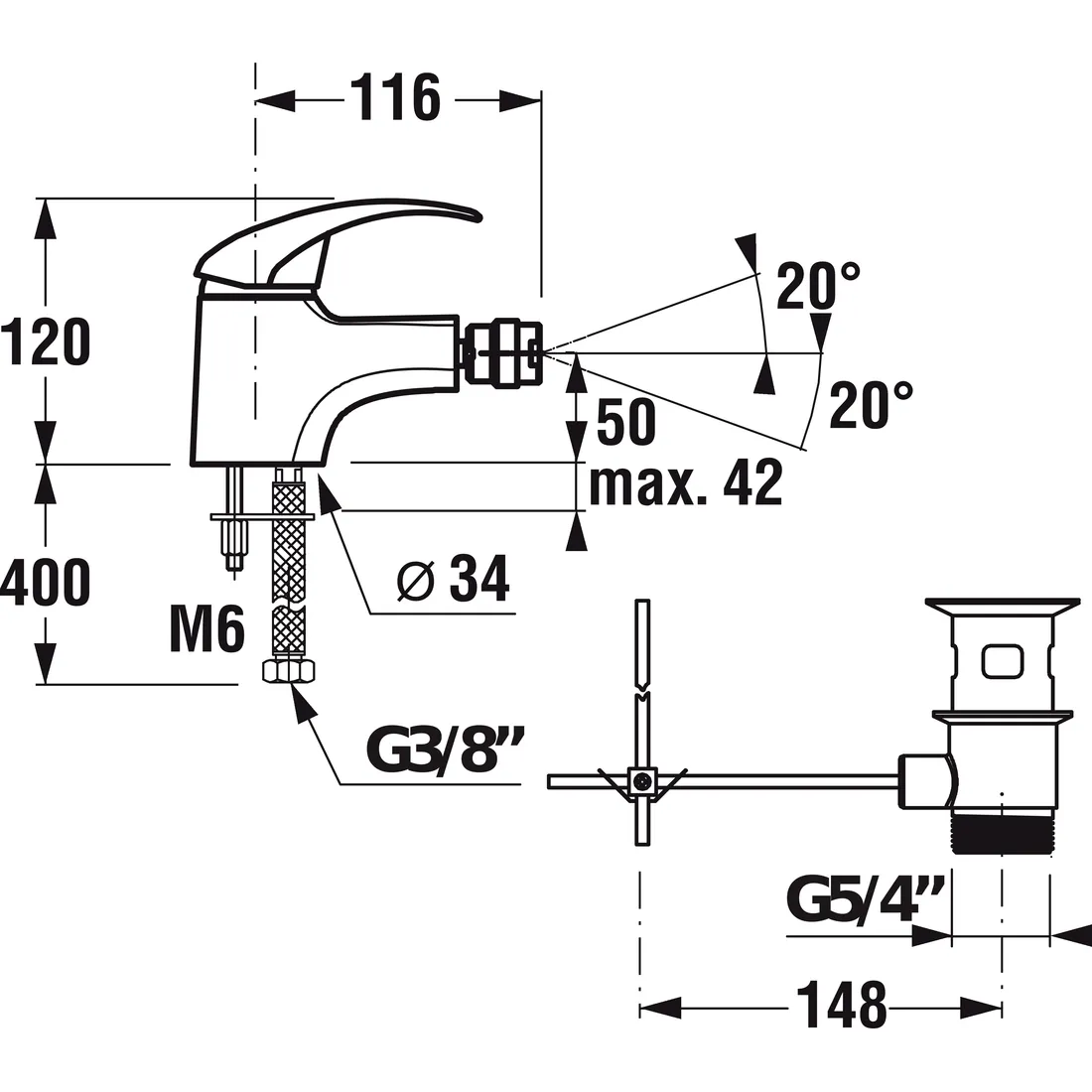 Bidetová stojánková páková baterie, s automatickou zátkou 5/4", chrom