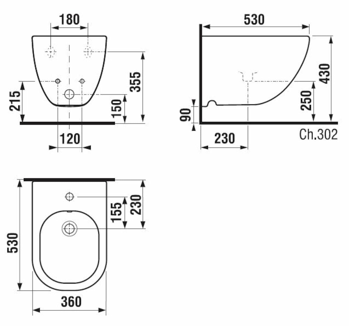 MIO 3171.2-302 bidet závěsný bez otvoru vc.instal.sady Easyfit
