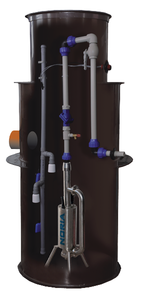 řídící jednotku se snímačem hladin (řídící jednotka s proudovým chráničem, dvěma automatickými režimy, akustickým alarmem a přepínačem pro manuální odčerpání), snímání hladiny - el. sondy v kombinaci se dvěma plovákovými spínači
