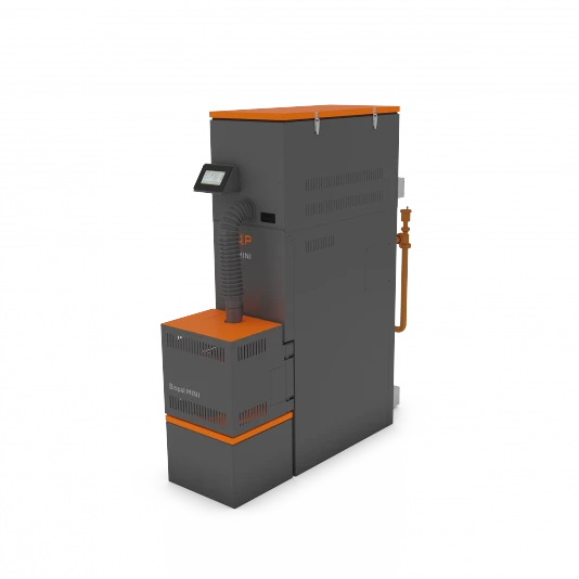 Kotel i násypka mají minimální rozměry a lze je umístit do velmi malých kotelen. Ke kotlům lze doplnit automatické čištění hořáku a výměníku kotle pomocí kompresoru, které zkracuje požadavky na čištění kotle a vynášení popela na minimum.