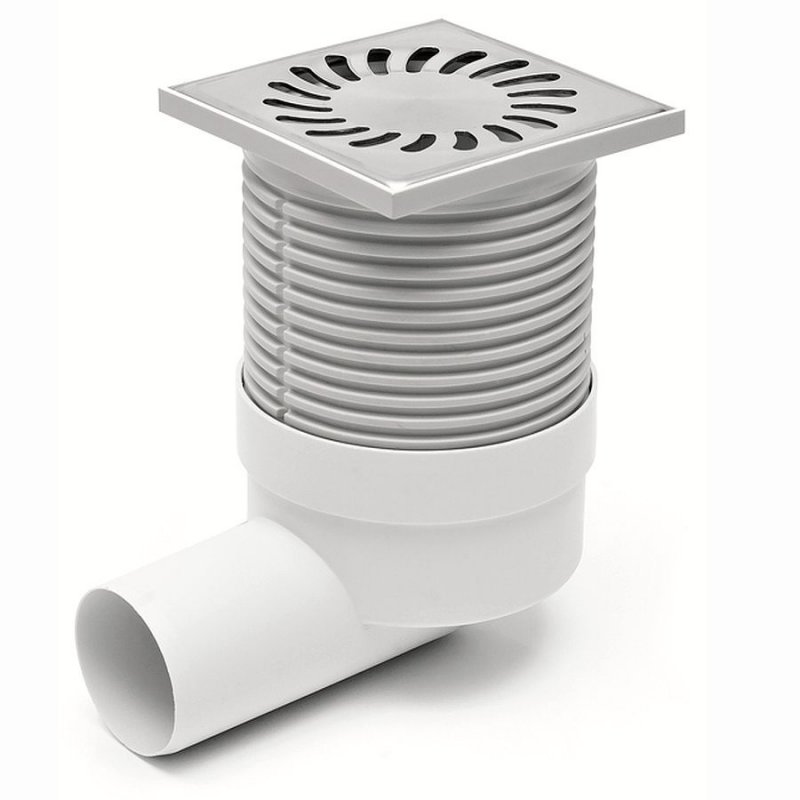 Podlahová vpusť boční DN-50 mříž 100x100 nerez s vodní hladinou. Je určena k vnitřnímu použití.Zatížení K3-300kg,odolnost do 90C. Nastavitelná výška vpustě bez límce.Napojení na hrdlové HT potrubí s těsněním.