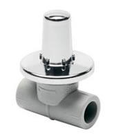 PPR podomítkový ventil. Určeno pro uzavírání potrubí s ovládáním nad úrovní povrchu stavební konstrukce, krytka je kovová.