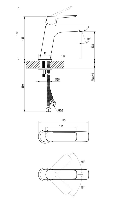 •připojovací hadičky: flexibilní 450 mm, průměr G3/8