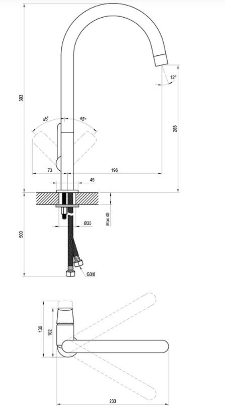•připojovací hadičky: flexibilní 400 mm, průměr G3/8