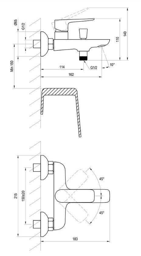 RA CL 022.00/150 vanova nastenna baterie bez setu
