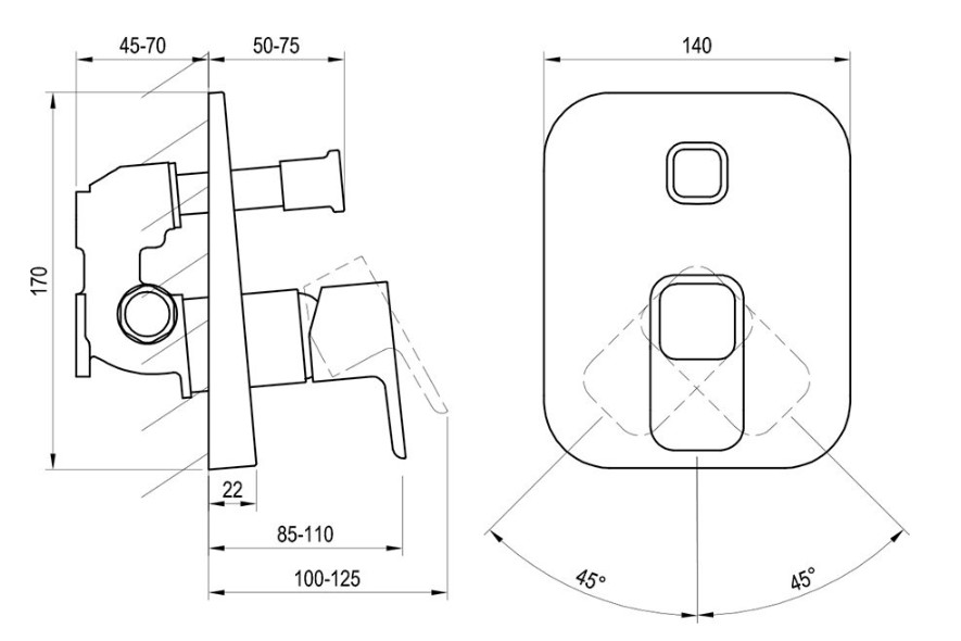 • vhodná: k vaně 10° nebo k vanám (s napouštěním přepadem a vývodem pro ruční sprchu) nebo pro sprchové kouty, které mají pevnou hlavovou a ruční sprchu