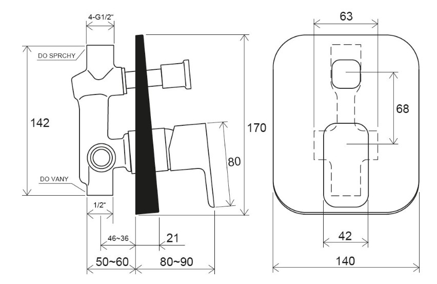 •vhodná: k vaně 10° nebo k vanám (s napouštěním přepadem a vývodem pro ruční sprchu) nebo pro sprchové kouty, které mají pevnou hlavovou a ruční sprchu
