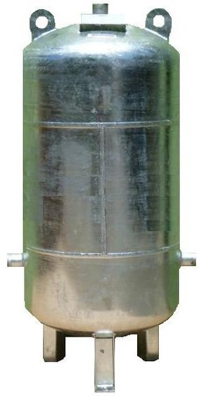 svařená ocelová tlaková nádoba stojatá, návarky s vnitřním závitem oboustranně žárově zinkována