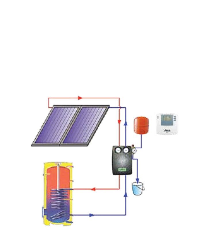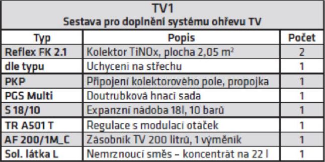 Solární sestava pro ohřev teplé vody, obsahuje 2 kolektory FK 2.1, každý o ploše 2,05 m2, zásobník AF 200/1M_C, regulaci TR A501T, hnací sadu PGS Multi, expanzní nádobu S 18/10, montážní sadu na rovnou střechu, volnou montáž, připojení a propojení kolektorů PKP, nemrznoucí směs na 22 litrů. SVT 9696.